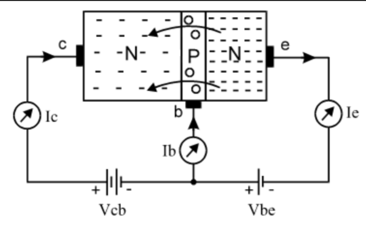 When no current is applied to the base region it serves as an insulator and it doesn’t allow current to flow from the collector to the emitter. However if we apply small current to the base it gains some electrons and it allows current to flow. so and device connected to the two terminals (collector and emitter) will turn on.